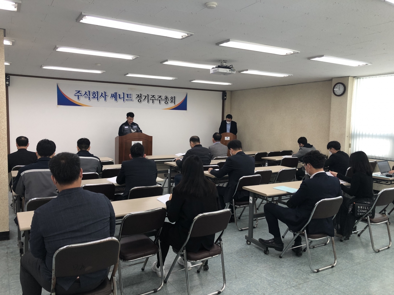 스테인리스 냉연강판 제조기업 쎄니트(각자 대표 최재관, 박승배)가 3월 26일 경남 의령군 본사에서 제26기 정기 주주총회를 개최했다. 각자 대표들의 재선임 건과 사업 목적 확대를 위한 정관 변경 등이 모두 원안대로 통과됐다.