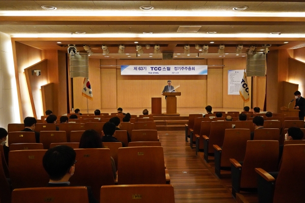 TCC스틸은 29일 TCC센터에서 제63기 정기주주총회를 열고 이와 같이 밝혔다. 이날 의장을 맡은 손기영 사장은 “지난해 코로나19 확산세 속에서 글로벌 경기위축과 보호무역주의로 어려운 한해를 보냈다”며 “올해도 어려운 환경이 이어지겠지만 수익 개선과 재무 안정화는 물론 제품의 품질 향상 및 시장 확대를 위해 더욱 힘쓰겠다”고 밝혔다.