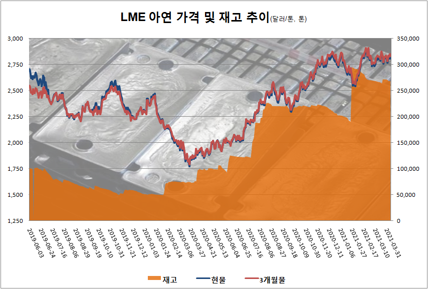 관련 업계에서는 당분간 아연 가격이 톤당 2,800달러 선에서 등락을 반복하면서 박스권 장세를 형성할 것으로 내다보고 있다.