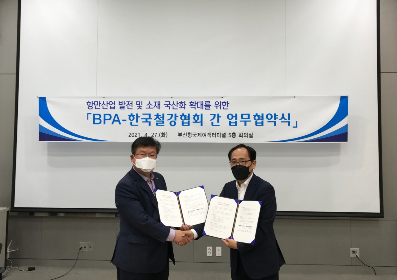 4월 27일 한국철강협회는 부산항만공사(사장 남기찬)와 부산 동구에 위치한 부산항 국제컨벤션센터에서 공사 건설본부장(민병근 본부장)과 협회 산업지원본부장(허대영 상무)이 참석한 가운데 양해각서를 체결하고, 항만산업 발전 및 소재 국산화를 위한 협력을 추진하기로 했다. 이번 행사는 코로나19 확산 방지를 위한 수칙을 철저히 지켜 진행됐다.