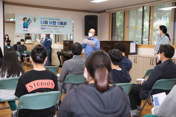 지난 13일 포항제철소는 창포종합복지관에서 청소년 심리코칭 사업인 '나비S' 프로그램 개강식을 가졌다. 이날 행사에는 포스코1%나눔사업 선정 위원과 포항제철소 행정섭외그룹장, 창포종합복지관 김병우 관장 등 코로나19 집단감염 예방을 위해 최소한의 인원만 참석했다.