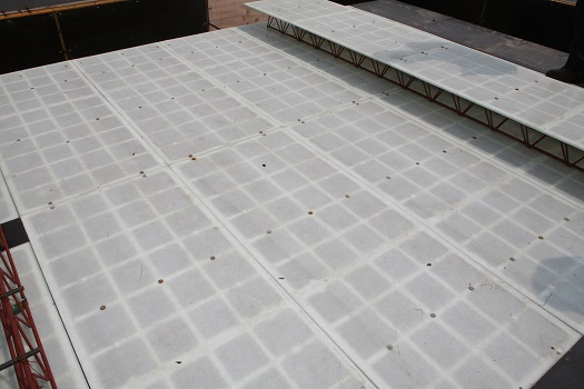 특히 친환경 플러스데크는 재래식 거푸집과 철판 트러스 데크의 장점을 집약한 제품으로 건설 현장 시공 후 재활용이 가능하도록 하부판인 GMT판을 탈부착할 수 있다. GMT판은 폴리프로필렌(Polypropylene) 수지와 Glass fiber Mat 강화재로 이루어진 판상 형태의 복합 소재다.