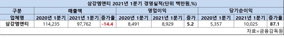 삼강엠앤티, 1분기 내실경영으로 수익성 확보