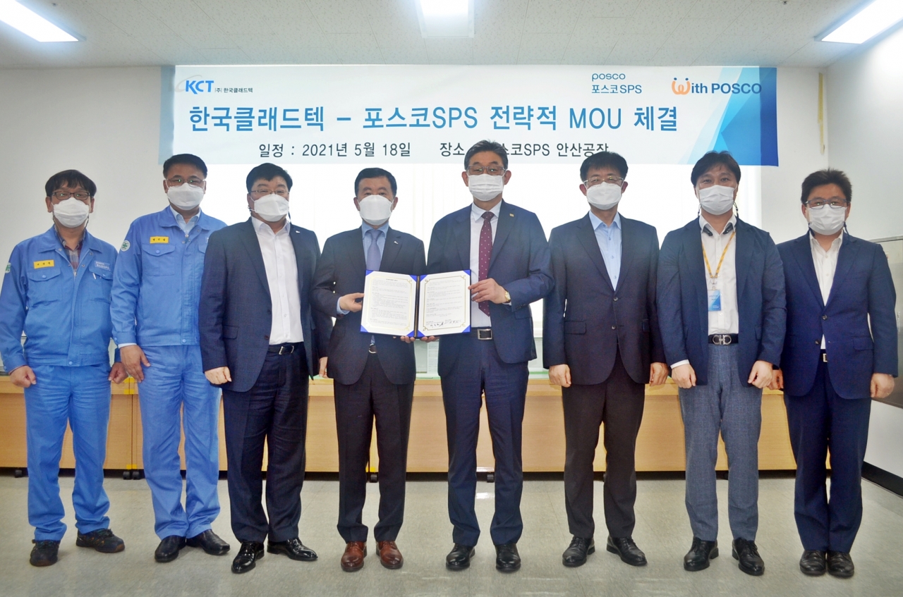 한국클래드텍(KCT, 대표 배동현)과 포스코에스피에스(대표 김학용)가 미래 친환경 클래드강판 개발을 위해 협력하기로 했다. 이를 위해 양사는 지난 18일, 포스코에스피에스 천안 본사에서 클래드 제품 개발을 위한 양해각서(MOU)를 체결했다.