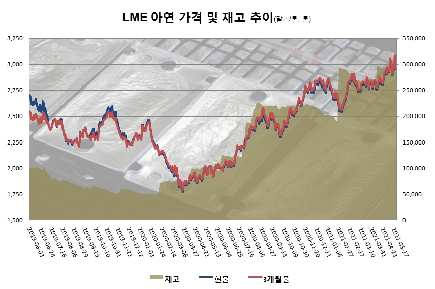 지난 20일 런던금속거래소(LME)에서 거래된 아연 현물가격은 전일대비 23.5달러 떨어진 톤당 2,945.5달러를, 3개월물 가격은 26달러 하락한 2,961.5달러를 각각 기록했다.