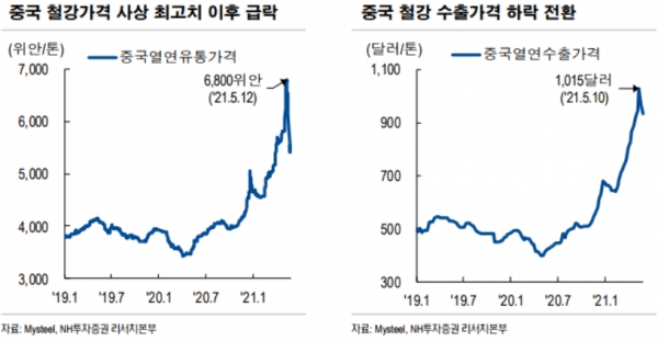 다만 중국의 가격 상승 억제 시도라는 돌발 변수와 높은 철광석 가격은 여전히 부담이다. 글로벌 철강 가격 강세가 예상되는 가운데 중국의 철강 가격이 국내에 어떤 영향을 미칠지가 관건이다.