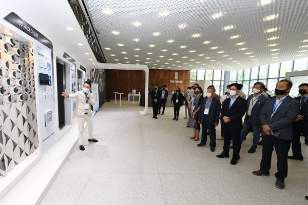프리미엄&美 란 주제로 열린 이번 스틸 내외장재 전시회에는 건설사, 설계사, 전문 인테리어사 등 28곳에서 214명이 참석했다. 코로나19 방역 기준에 맞춰 전시회 투어는 3일간 8개 그룹으로 나눠 진행했다.