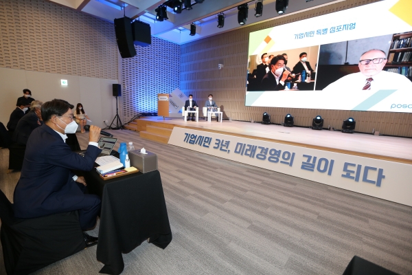 ‘포스코 기업시민 3년, 미래 경영의 길이 되다’를 주제로 열린 이날 심포지엄은 최정우 회장과 기업시민포럼 곽수근 서울대 교수, 포스텍 송호근 교수, 고려대 문형구 교수 등 학계 전문가가 참여들이 참석한 가운데 온·오프라인으로 진행되었으며, 국내외 주요 석학과 전문가들이 기업시민 경영이념의 가치와 성과를 Business, Society, People 분야에서 분석한 연구결과를 발표했다.