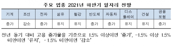 한국고용정보원과 한국산업기술진흥원은 ‘2021년 하반기 주요 업종 일자리 전망’을 발표했다.