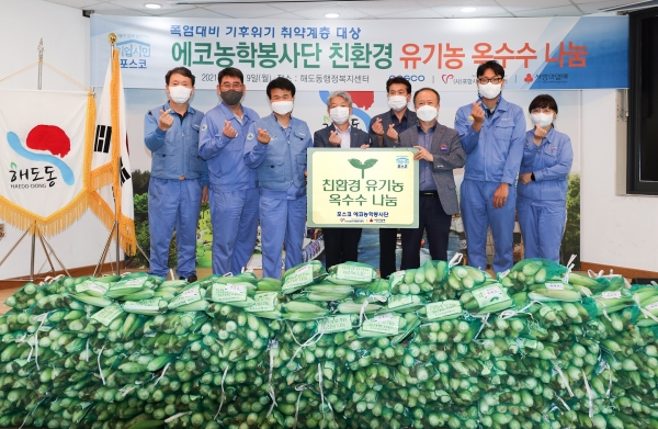 포스코 포항제철소(소장 남수희)가 9일 규산질 슬래그 비료로 키운 친환경 유기농 옥수수를 해도동 취약계층에 전달했다.