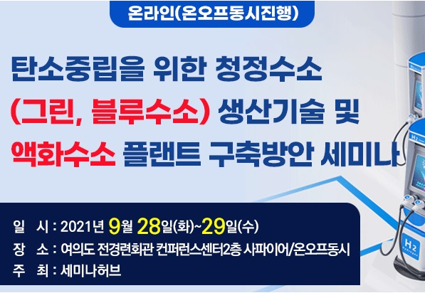 이에 세미나허브는 9월 28~29일 이틀간 서울 여의도 전경련회관에서 수소 경제 활성화에 핵심 요소가 될 ‘청정수소 생산기술과 액화수소 인프라 구축방안을 분석한 세미나’를 온·오프라인으로 동시 진행할 예정이라고 밝혔다.