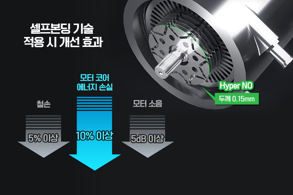 셀프본딩은 강판 전면에 본드가 도포된 상태에서 가열∙가압 적층한 기술을 말한다. 이 기술은 강판에 본드를 닷트(dot) 방식으로 도포해 적층하는 기존 방법보다 소음과 효율을 혁신적으로 개선할 수 있다. 포스코는 셀프본딩 기술을 지난 2016년 개발했다.