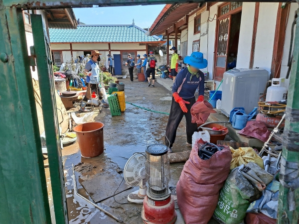 태풍 피해 가정에 생필품 지원 ... 수해 심각한 죽장면에는 피해 복구 지원 봉사활동 펼쳐