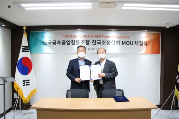 한국금속공업협동조합(이사장 이의현)은 9월 9일(목) 한국조정협회와 분쟁조정 지원에 대한 업무협정을 체결하고 조합원사 들이 상거래시 발생할 수 있는 분쟁에 적극 대처하기로 했다.