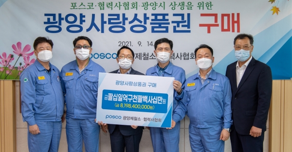 포스코 광양제철소(소장 김지용)가 추석을 맞아 광양사랑상품권 82억여원을 구매하고 지역 경제 활성화에 나섰다.