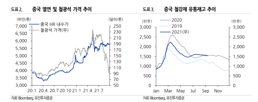 유진투자증권 방민진 연구원은 “중국 2대 부동산 개발업체 헝다(Ever grande)그룹의 파산 리스크가 불거지며, 철광석 가격이 톤당 90달러 초반대 수준까지 급락했다가 톤당 110달러대 수준을 회복했다”며 “헝다그룹의 부동산 건설 및 관리부문은 중국 내 수천 개의 프로젝트를 진행 중으로 최악의 경우 부동산 시장과 중국 철강, 구리 등 원자재 수요에 미칠 영향이 적지 않을 것”이라고 설명했다.