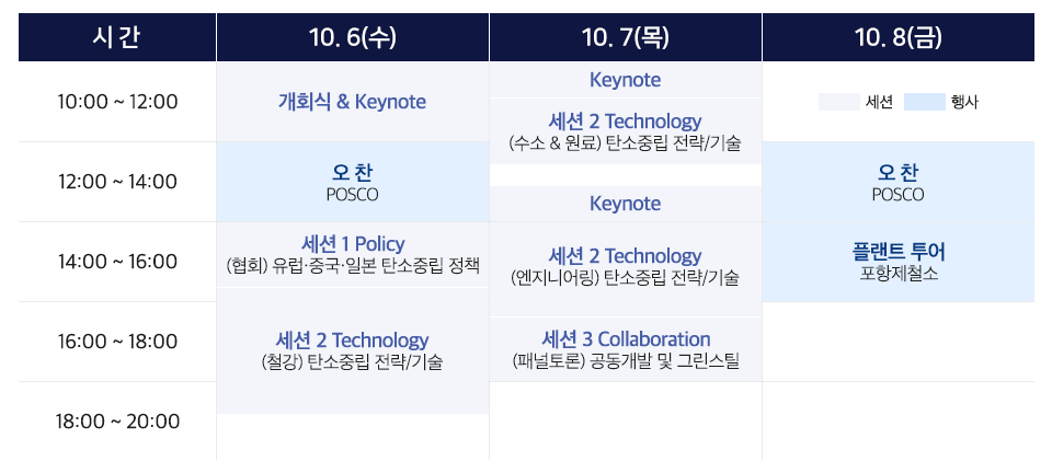 정책(Policy) 세션은 유럽철강협회 (EUROFER), 중국철강협회(CISA), 일본철강연맹(JISF)등이 철강업계의 탄소중립 정책에 대해 논의한다.
