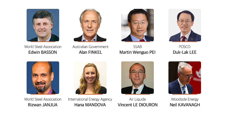첫날 키노트(Keynote) 세션에서는 세계철강협회(World Steel Association) 사무총장 에드윈 바쏜(Edwin BASSON)과 호주정부의 저탄소 특별 고문 알란 핀켈(Alan FINKEL)이 각각 '저탄소 시대를 위한 철강산업의 도전과 역할', '수소 생산, 공급, 조달 등에 대한 현황과 전망'을 주제로 강연에 나서며, 뒤이어 수소환원제철 기술 개발에 있어 가장 앞서 있다고 평가받는 SSAB와 포스코의 최고기술책임자가 각사의 기술개발 동향을 직접 발표한다.