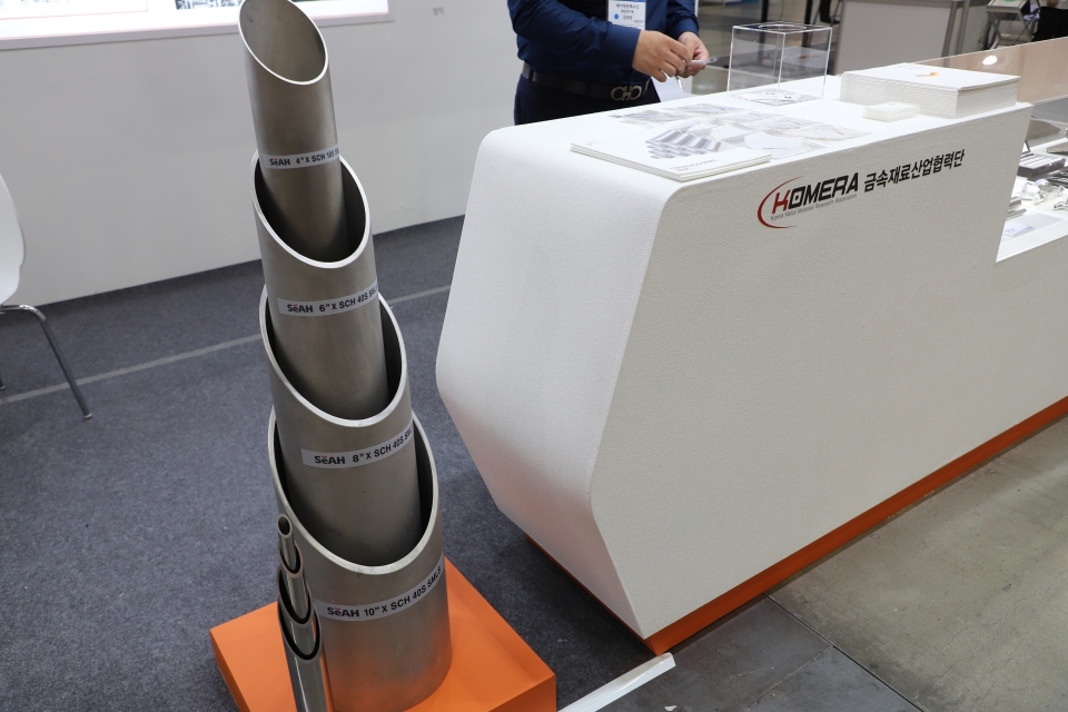 세아창원특수강(대표 이상은)이 13일 일산 킨텍스에서 개최된 ‘2021 소부장뿌리기술대전’에서 스테인리스 파이프와 스테인리스 봉강, 정밀 스테인리스강관, 스테인리스 기반 클래드강판 등을 전시했다. 세아창원특수강은 클래드강판 국책 사업을 통해 새로운 시장 진출에도 속도를 내고 있다.