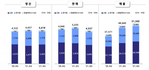 매출액은 판재류와 봉형강 등 전 제품에 걸쳐 판매단가 인상이 이뤄지면서 늘어났다. 매출액은 5조1,500억원을 기록해 2분기보다 2,840억원이 증가했다. 고로에서 2조8,548억원, 전기로에서 1조9,560억원, 모빌리티에서 3,392억원을 올렸다.