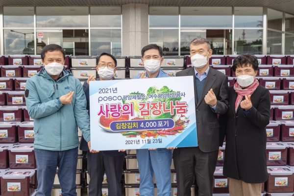 포스코 광양제철소(소장 김지용)가 23일 ‘사랑의 김장김치’ 전달식을 열고 훈훈한 감동을 전했다.