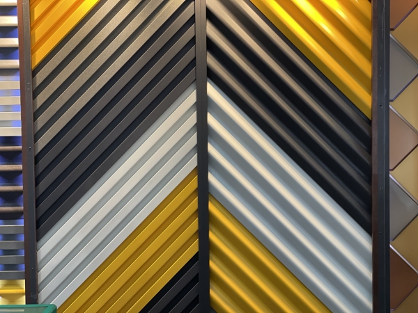 루버락강판은 직사각형 기둥 형태의 패턴이 연속으로 이뤄져 심플하고 강인한 느낌을 주는 외장재다. 주로 오래된 공장, 상가, 카페 등 여러 건물의 리모델링용으로 활용이 가능하다.