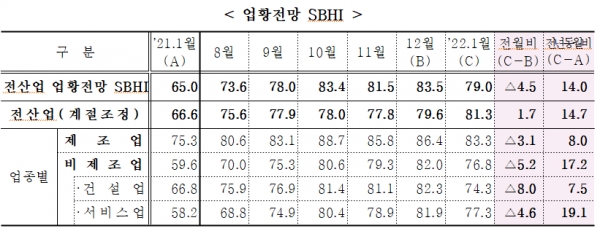 2022년 1월 경기전망지수 79.0, 4개월 만에 80p 밑돌아