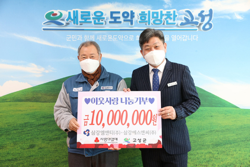 삼강엠앤티와 삼강에스앤씨는 12월 30일 고성군청을 방문해 어려운 이웃에게 사용해 달라며 성금 1,000만 원을 기부했다.