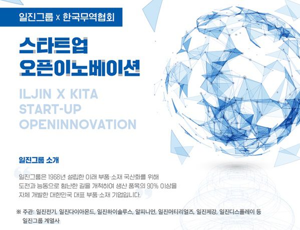 일진그룹은 한국무역협회(무협·KITA)와 함께 ‘일진그룹·KITA 스타트업 오픈 이노베이션’에 참가할 스타트업을 모집한다고 밝혔다.