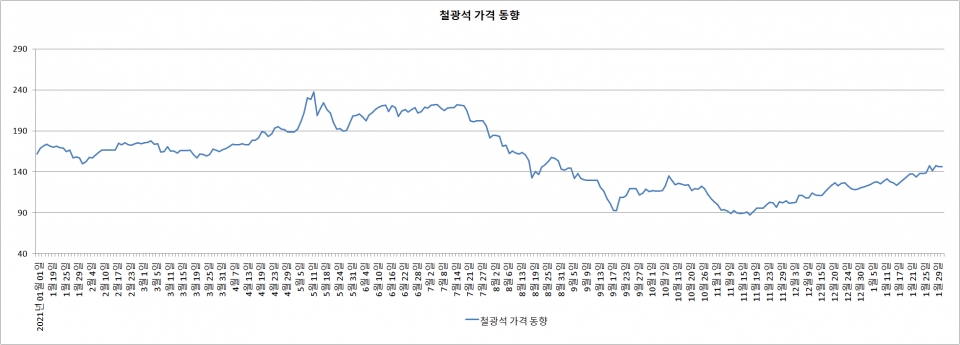 여기에 중국의 경제 산업 상황이 우호적으로 돌아서면서 철광석 가격에도 불을 짚혔다. 중국 정부는 2022년 경제 안정화를 위한 선제적 통화정책 및 재정정책을 추진할 것을 밝혔다. 이에 철광석 생산량의 전망치 유지 속 수요가 철광석 가격을 끌어올릴 전망이다. 아울러 철광석 수요는 중국 부동산 정책의 영향을 받을 전망이다.