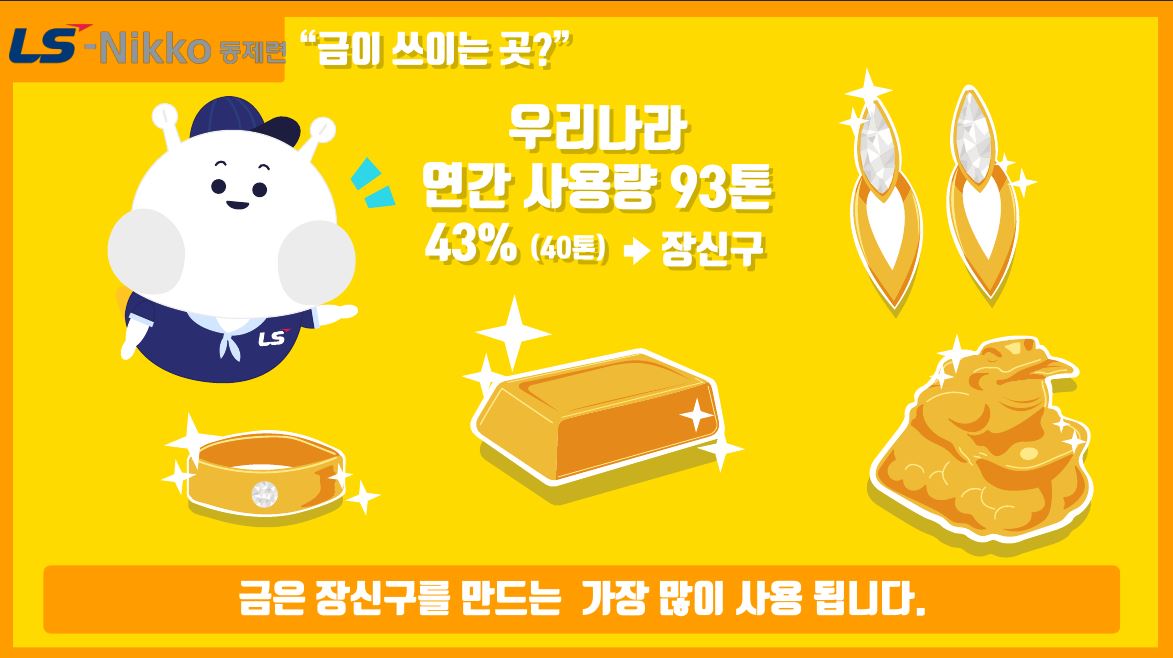 ‘메탈버스’ 두 번째 이야기로는 국내 유일의 동제련기업이자 단일 동제련소 기준으로 세계 2위 규모를 자랑하는 LS니꼬동제련의 컨텐츠 지원을 받아 금(金)에 대해 살펴보기로 한다.