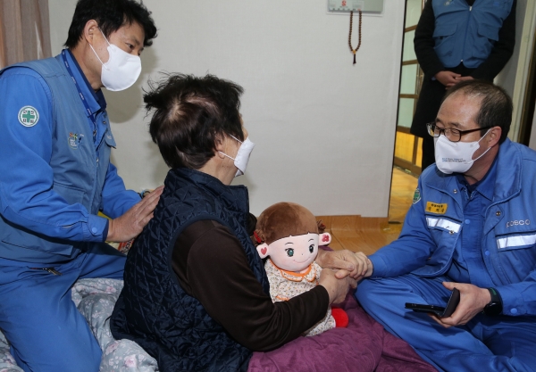 이 날 해도동에 위치한 어르신께 돌봄 인형을 전달한 포스코 섬김이봉사단 이종철 단장은, “코로나 등으로 여러가지 걱정이 많았는데, 인형을 통해 수집된 정보로 어르신이 잘 활동하고 계신지 확인할 수 있고, 비상상황에도 한걸음에 달려갈 수 있게 되어 안심이 된다.”고 말했다.