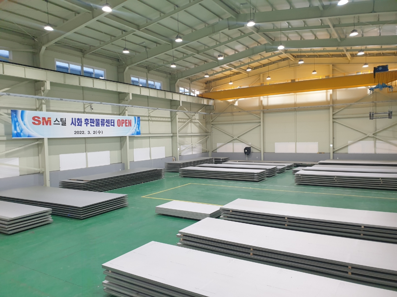스테인리스(STS) 후판 전문제조사 SM스틸(대표 김기호)이 시화 MTV지역에 STS 후판 전용 물류센터를 2일 오픈했다. SM스틸은 2020년 6월 군산공장 준공 이래 지속적으로 STS후판 사업 고도화를 추진하고 있다.