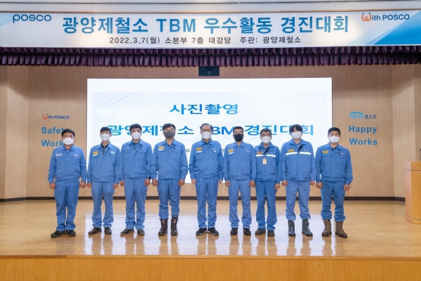 광양제철소 2022년 TBM 우수사례 경진대회는 각 부서들이 협력사와 파트너가 되어 총 8개 팀이 출전, 각자 동영상으로 제작한 TBM 우수사례를 발표 및 공유하고, 임직원들의 안전의식을 다시 한 번 제고하는 계기를 마련했다.