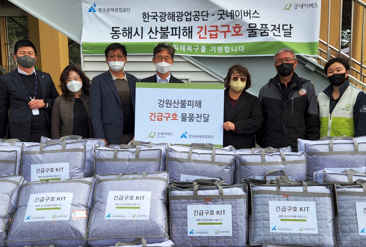 한국광해광업공단(사장 황규연)은 지난 11일 산불로 민간피해가 발생한 강원 동해시와 경북 울진군의 이재민 시설을 찾아 총 1천만원 상당의 긴급구호물품을 전달했다.