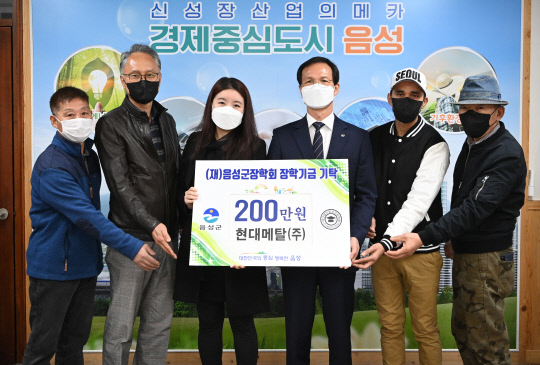 파형강관 제조업체 현대메탈(대표 김자연, 최정란)은 14일 군청을 방문해 (재)음성군장학회에 장학금 200만 원을 기탁했다.