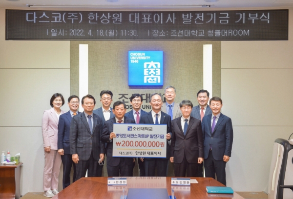 종합건축자재 생산기업 다스코 한상원 대표이사가 조선대학교에 2억원의 발전기금을 쾌척했다.