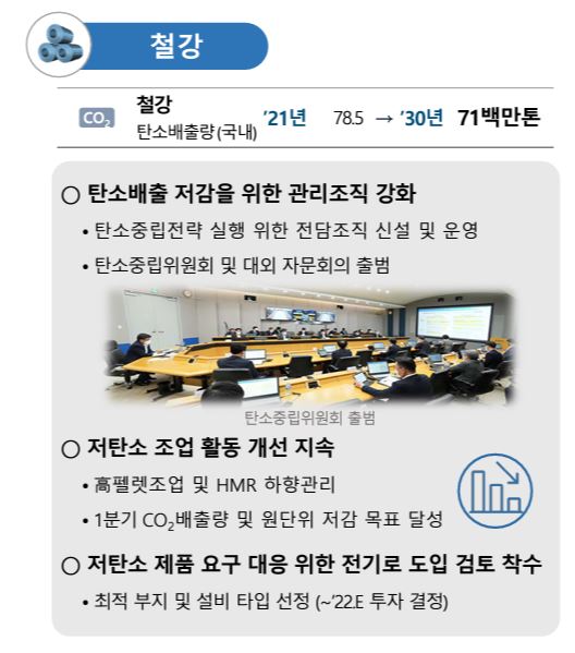 회사측은 올해 탄소중립전략 실행을 위한 전담조직 신설 및 운영하고 탄소중립위원회 및 대외 자문회의를 출범시켰다. 또 저탄소 조업활동 개선을 지속해 高펠렛조업 및 HMR 하향을 관리하고 1분기 CO2 배출량 및 원단위 저감 목표를 달성했다.