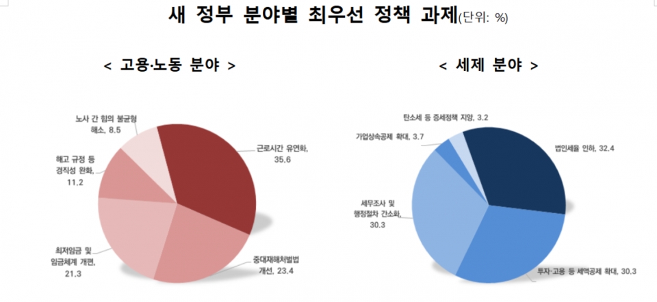 또한 중견기업계는 새 정부의 최우선 과제로 경제 활성화(67.6%)를 꼽았다. 국민 통합(13.3%), 정부 개혁(5.9%), 노동 개혁(4.8%) 등이 뒤를 이었다.