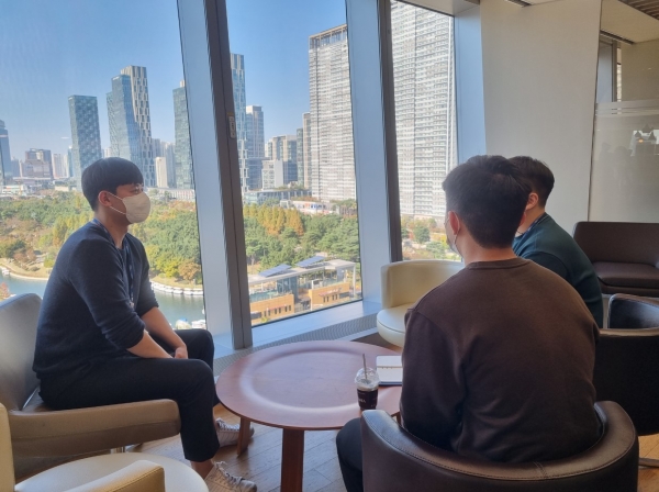 포스코1%나눔재단 자립준비청년 지원사업인 '두드림'의 3기 청년들이 포스코인터내셔널 직원으로부터 무역업무에 대한 멘토링을 받고 있다=사진제공 포스코