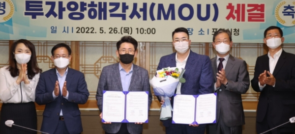 포항시는 포항시청에서 포항철강산업단지 내 공장 신설 투자를 추진하고 있는 대지철강과 투자양해각서(MOU)를 체결했다고 26일 밝혔다.