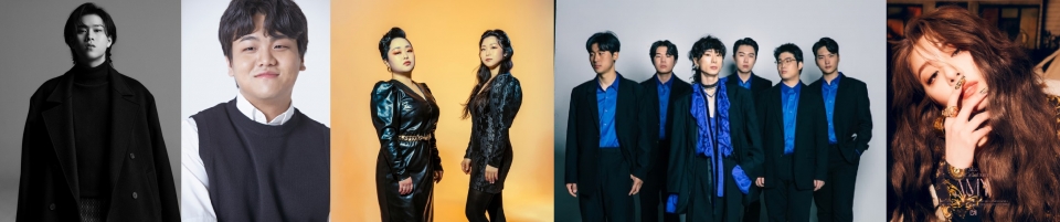 '2022 기업시민 포스코 콘서트 『With your Drama』' 출연진. (왼쪽부터) 이무진, 오현우, 뮤르, 서도밴드, 에일리