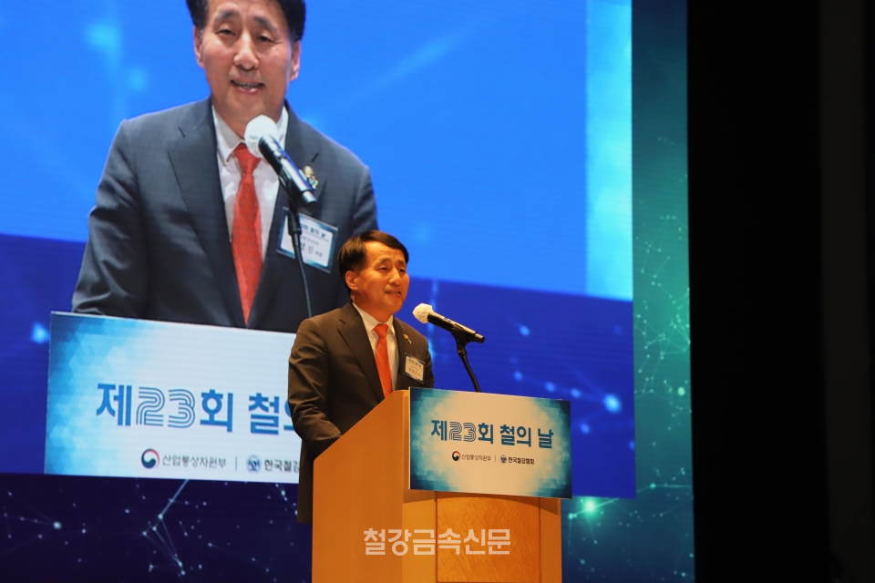 장영진 산업부 차관은 이날 축사에서 "우리 철강업계는 지금 새로운 시대를 맞이하고 있다"며 "글로벌 공급망, 저탄소 시장 흐름 등 많은 도전 과제가 있지만 지금껏 그래왔던 것처럼 업계 여러분들의 열정과 지혜로 새로운 도전도 슬기롭게 극복하리라 믿는다"고 말했다.