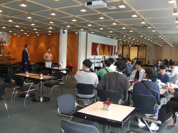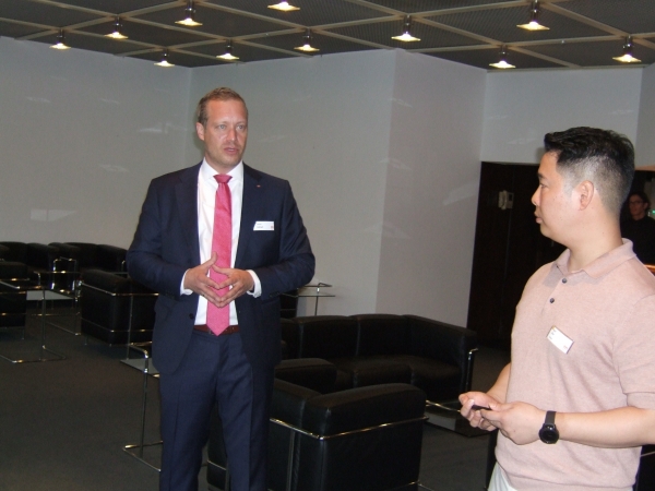 독일 메세측 Daniel Ryfisch 본부장으로부터 전시회장 설명을 듣는 본지 참관단