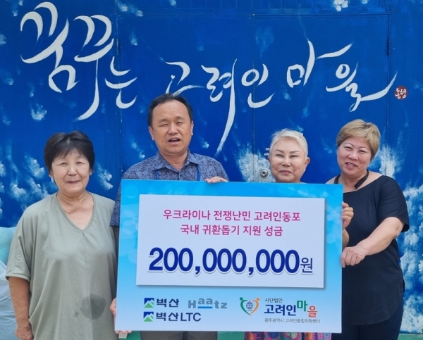 종합건축자재기업 벽산(대표 김성식)은 전라도 광주에 위치한 사단법인 고려인마을을 통해 우크라이나 전쟁으로 고통받고 있는 고려인 동포들의 귀환을 위한 후원금을 전달했다고 21일 밝혔다.