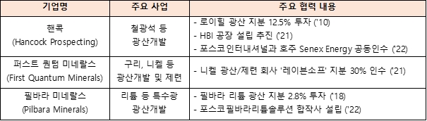 한편 포스코그룹은 철광석, 리튬, 니켈 등 원료개발을 위해 호주에 4조원 이상을 투자해왔으며, 호주가 넓은 부지와 풍부한 태양광, 풍력 자원과 함께 선진적인 법규와 제도 등 우수한 사업환경을 갖추고 있어 해외 청정수소 개발에 최적화된 국가라고 평가하고 있다.