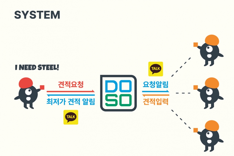 도소마켓은 구매자가 원하는 품목을 전국 어디서나 제휴 판매사를 통해 공급하는 온라인 철강 거래 플랫폼이다.