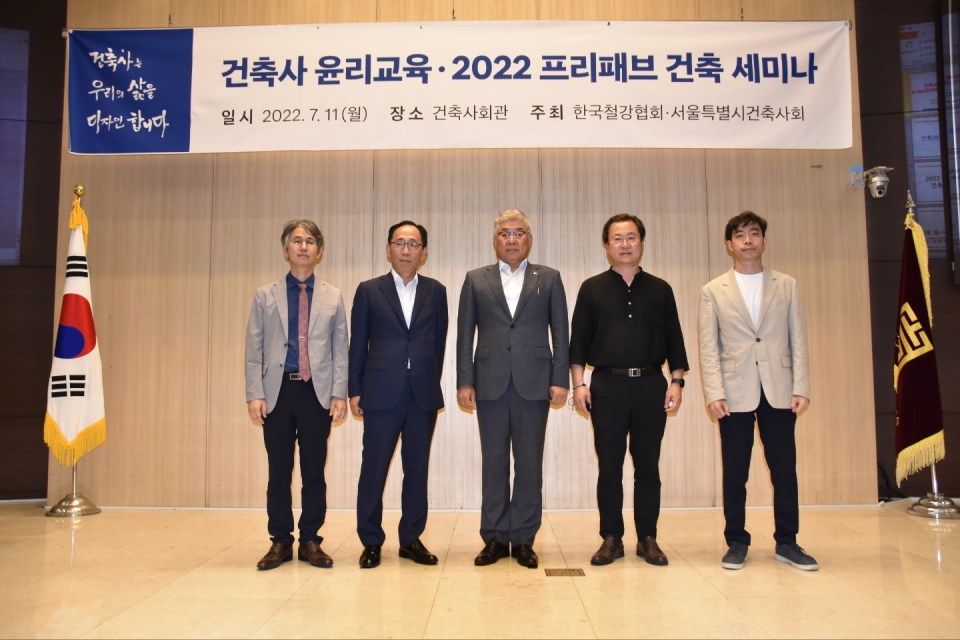 한국철강협회 강구조센터(회장 유삼, POSCO 상무)는 7월 11일 서울특별시건축사회(회장 김재록, 청구건축사사무소 대표)와 공동으로 건축사회관에서 건축사 및 업계 관계자를 대상으로 ‘2022 프리패브 건축 세미나’를 개최했다.