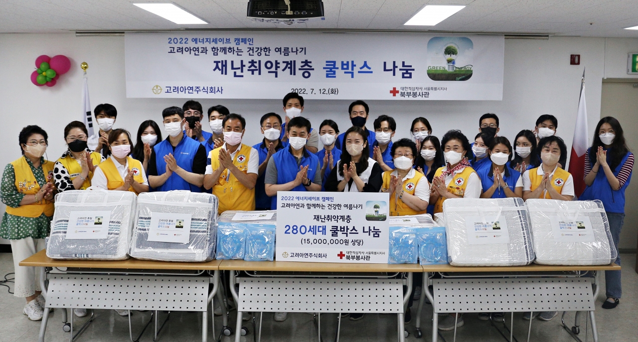 특히, 이날 고려아연은 재난취약계층을 위한 에너지세이브 캠페인에 동참하며 적십자사 서울지사에 3,000만원의 기부금을 추가로 전달해 혹서기 재난취약계층 280세대에 쿨스카프와 여름이불 세트로 구성된 쿨박스를 함께 전달하며 의미를 더했다.