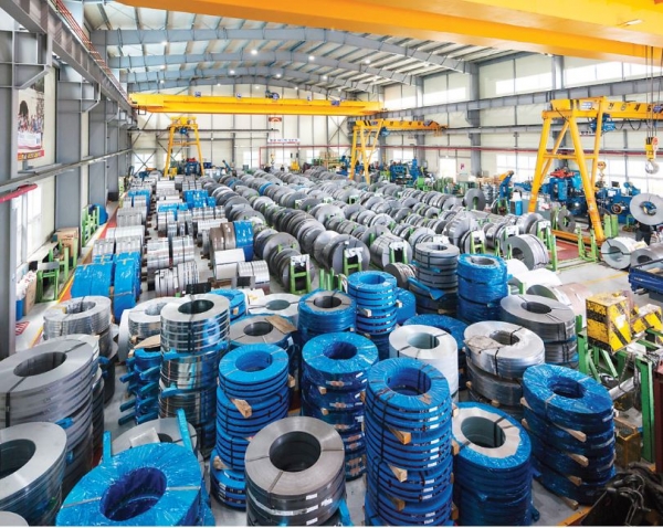 실제로 대홍 코스텍의 공장 내부에 있는 대부분의 소재들은 1차 슬리팅된 코일이었다. 대형슬리터와 소형슬리터를 각 1기씩 두고 있지만 재압연공정의 작업 효율성을 위해 스틸서비스센터에서 1차 가공을 거친 코일들을 공급받고 있다. 1,219mm 원폭 소재의 경우에는 단중이 무거워 잘 고정되는 장점이 있다. 그러나 1차 가공을 마친 협폭 소재는 원폭 소재 대비 쓰러질 수 있는 가능성이 높기 때문에 코일과 직원의 안전을 위해서라도 철제 지지대 형식으로 코일 관리를 하고 있다.